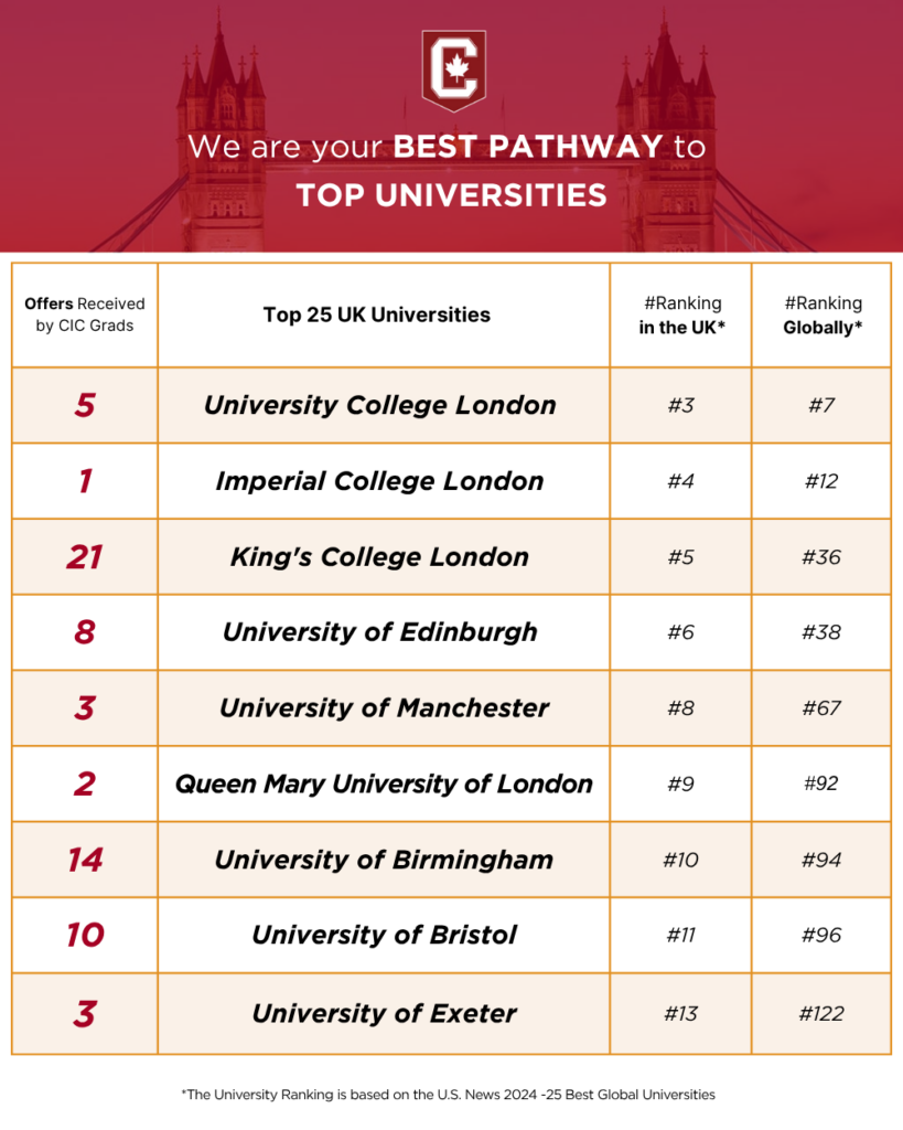 A Glimpse at CIC Students’ Offers from Leading UK Universities