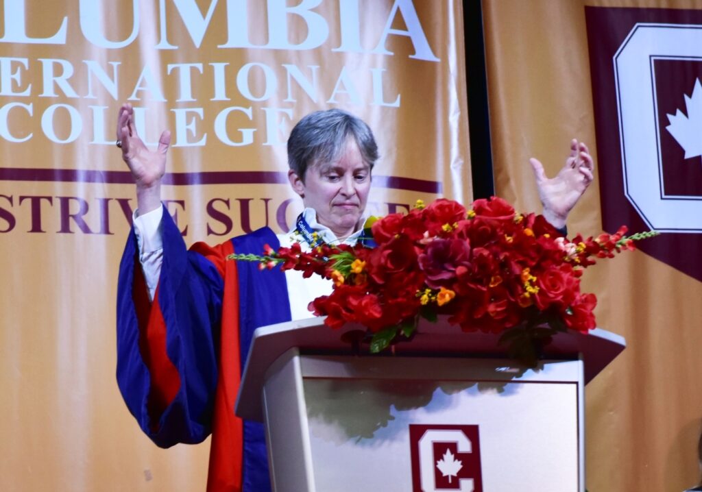 Dr. Carolyn Ford, the Director of International Undergraduate Admissions at Western University, delivered the keynote speech. This is her second time giving an inspiring speech at the CIC graduation ceremony.