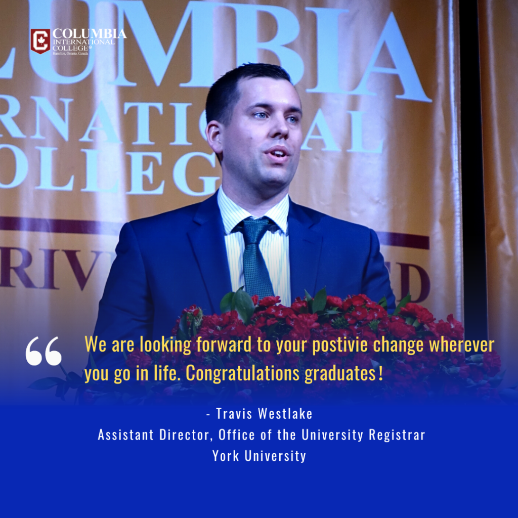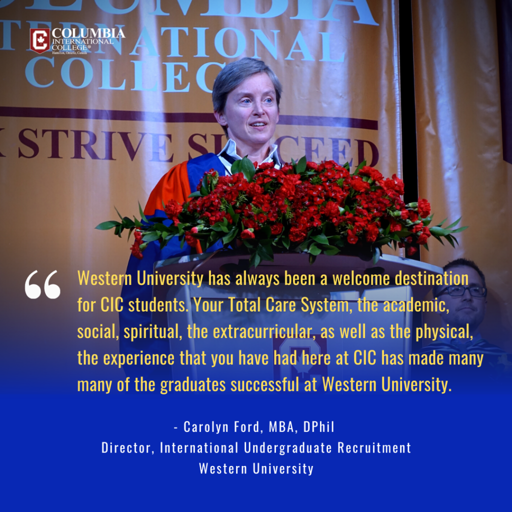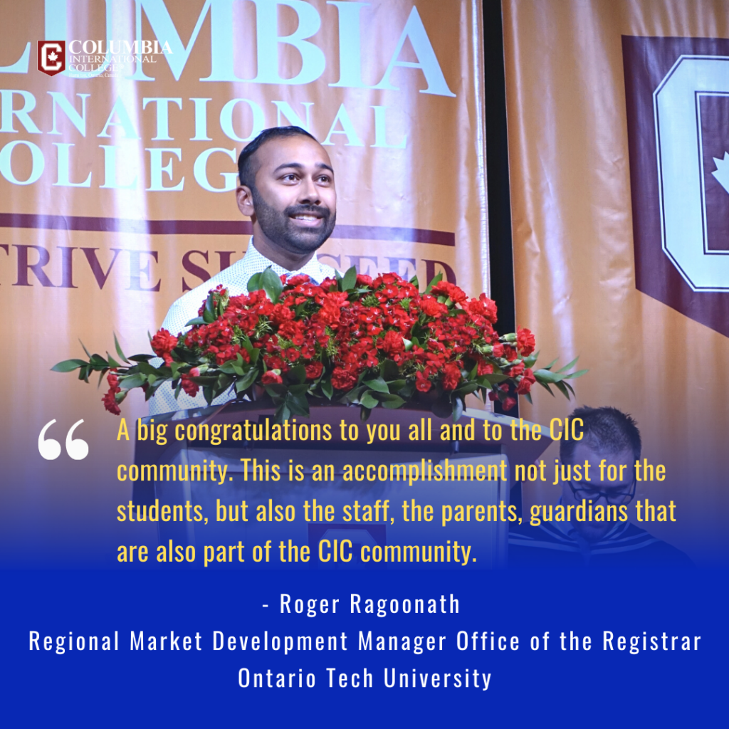 The heads of admissions departments from prestigious institutions such as the University of Toronto, University of Waterloo, McMaster University, Brock University, Western University, York University, and Ontario Institute of Technology graced the graduation ceremony with their presence.