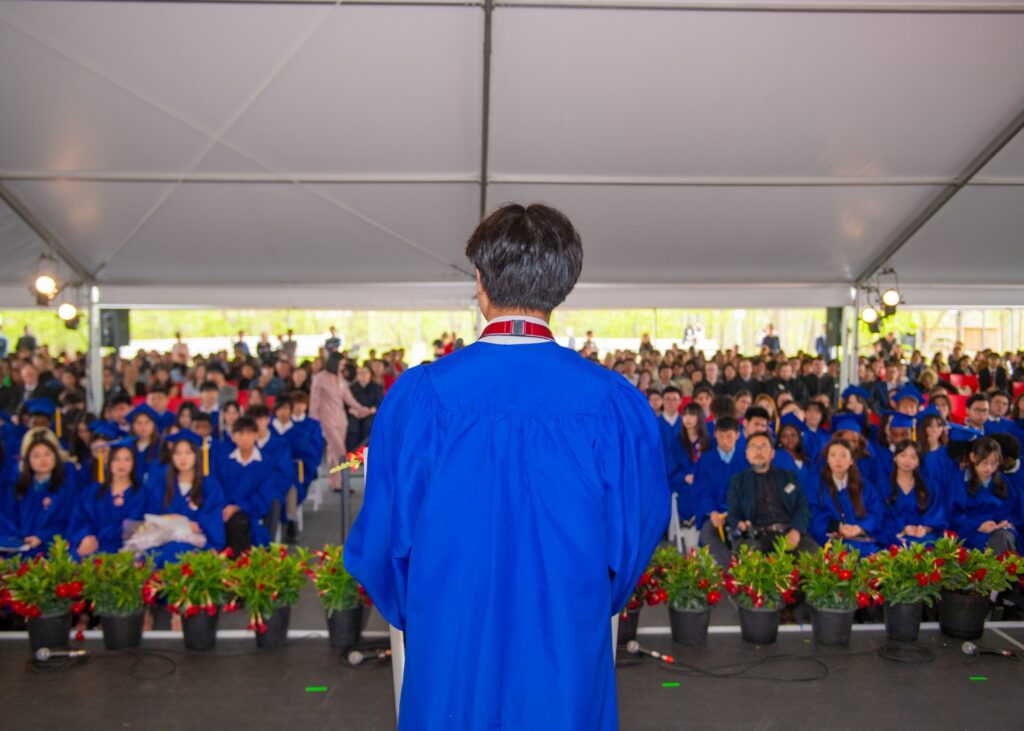 Before I begin anything, please look at the person sitting next to you. It might be someone close, or a classmate you’ve shared countless moments with. For those of us who came to Canada alone, we found friends who became family — people who made this place feel like home.  Do you remember those moments when you were struggling, and a friend found you? They talked to you, lifted you up, and stayed by your side. They understood you, accepted you, and treated you like family.  So, to all the friends who’ve been there, supporting us through hard time— thank you.  There was this one day — a graduate student who lost her necklace.  Not just any necklace, but a gift from someone really special to her. She was devastated, anxious, and gently asked the housekeeper to keep an eye out while cleaning. After school, the student came back to her room, saw a note on her desk: “I found it,” right next to her necklace. The housekeeper didn’t have to search. It wasn’t her job. But she did it. She cared. She took the time to find it, left a message that made a heartbroken girl smile again.   With this story, we want to recognize the Housekeeping, IT, Maintenance, and Security teams — the quiet guardians of our everyday life. They fix what’s broken, protect what matters, and do the little things that often go unnoticed. Today, we thank them — for holding us up in ways we rarely see, but always feel. Let’s not take that for granted.  There was one day — a graduate student almost didn’t go to MUN trip. After two years in the Elite Pathway Program, he hesitated, feeling overwhelmed and unsure. But the staff didn’t give up. They encouraged him, and said something simple but powerful: “You only live once—and this is a chance you’ll never get back.” So, he went, breaking through of his comfort zone, started being the best version of himself, living with courage.  With this story, we want to recognize the SLD staff, the UPO the Guidance team, and Admissions — those who quietly walk beside us, guiding and believing in our potential. Today, we thank them for their impact echoes in who we’ve become. Let’s not take that for granted.  A graduate student who fell sick late one night, feeling exhausted and feverish. At 4 a.m., she called the front desk, just asking for some fresh air. But the staff didn’t just say yes—she walked with her, stayed with her, and made sure she was never alone. When she needed to go to the hospital, they found someone to go with her and waited by her side for 4 hours. In that moment, the student didn’t just feel cared for—she felt loved. With this story, we want to recognize the Residence staff, the Medical and Wellness team, and Chartwell — the ones who care for our health, well-being, and daily life. Today, we thank them for showing up with quiet compassion we always feel. Let’s not take that for granted.  There was one semester when a teacher of a graduate student had to step away—she was diagnosed with cancer and went on sick leave. We all expected her to rest. But near the end, she came back to visit her student. Still weak, still recovering—but she stood in front of the class anyway. Not because she had to, but because she wanted them to know that she was going to be okay. And in that moment, we didn’t just see a teacher. We saw resilience, love, and someone who reminded us that the most powerful lessons aren’t always taught from a textbook—but shown through actions.  With this story, we want to recognize the teachers, the Academic Office, and the Accounting Office — the ones who guide, support, and hold this place together. Today, we thank them for making learning possible through care, presence, and quiet dedication. Let’s not take that for granted.  Before I end the speech, let’s take a moment to thank the people who made all of this possible — our parents. They gave us the chance to come here, to grow not just in school, but in life. They trusted us to live on our own, to become independent. That trust is a gift. It’s not easy to let go of the child they’ve cared for many years. But they did it, because they want us to have more, to go further, to live a life full of opportunity. Our parents want us to have a better future than they had. And for that, they’ve sacrificed more than we may ever fully understand.  So, if your parents are here today, please make sure to give them a hug after the ceremony. If they’re not here, give them a call.   We’ve come a long way — not just in what we’ve learned, but in who we’ve become. And none of that happened alone. The kindness and care we’ve received from so many isn’t an obligation — it’s a choice. Looking back at our journey, we can see how much we’ve been given — and how often we took it for granted. From teachers, friends, staffs, and parents every bit of it helped shape us. All of this wasn’t just given, it was earned with love and dedication. So today, let’s recognize all that we’ve been given, and let’s never take it for granted again.  As we move forward, let’s carry the same spirit, the spirit to appreciate, to give back, and to honour those who care us with love. Thank you for listening.