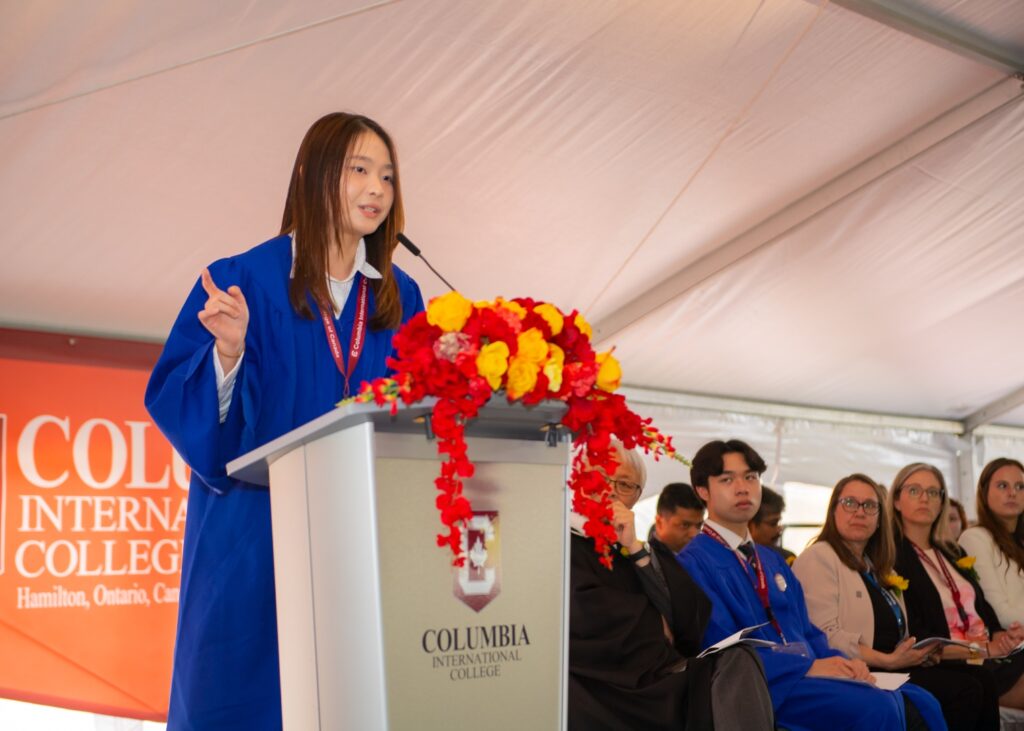 Good afternoon fellow graduates, platform party, and parents. My name is Alison, I’m very honoured to be the vote of thanks for this year’s May graduates. The theme of my speech today is simple: don’t take it for granted. Because behind every meal, every class, every small act of care — there were people who made it all possible. And too often, we don’t notice… until we stop and look back. So today, I want to share four stories, through these stories I hope we can recognize just the departments that have shaped our time at CIC.